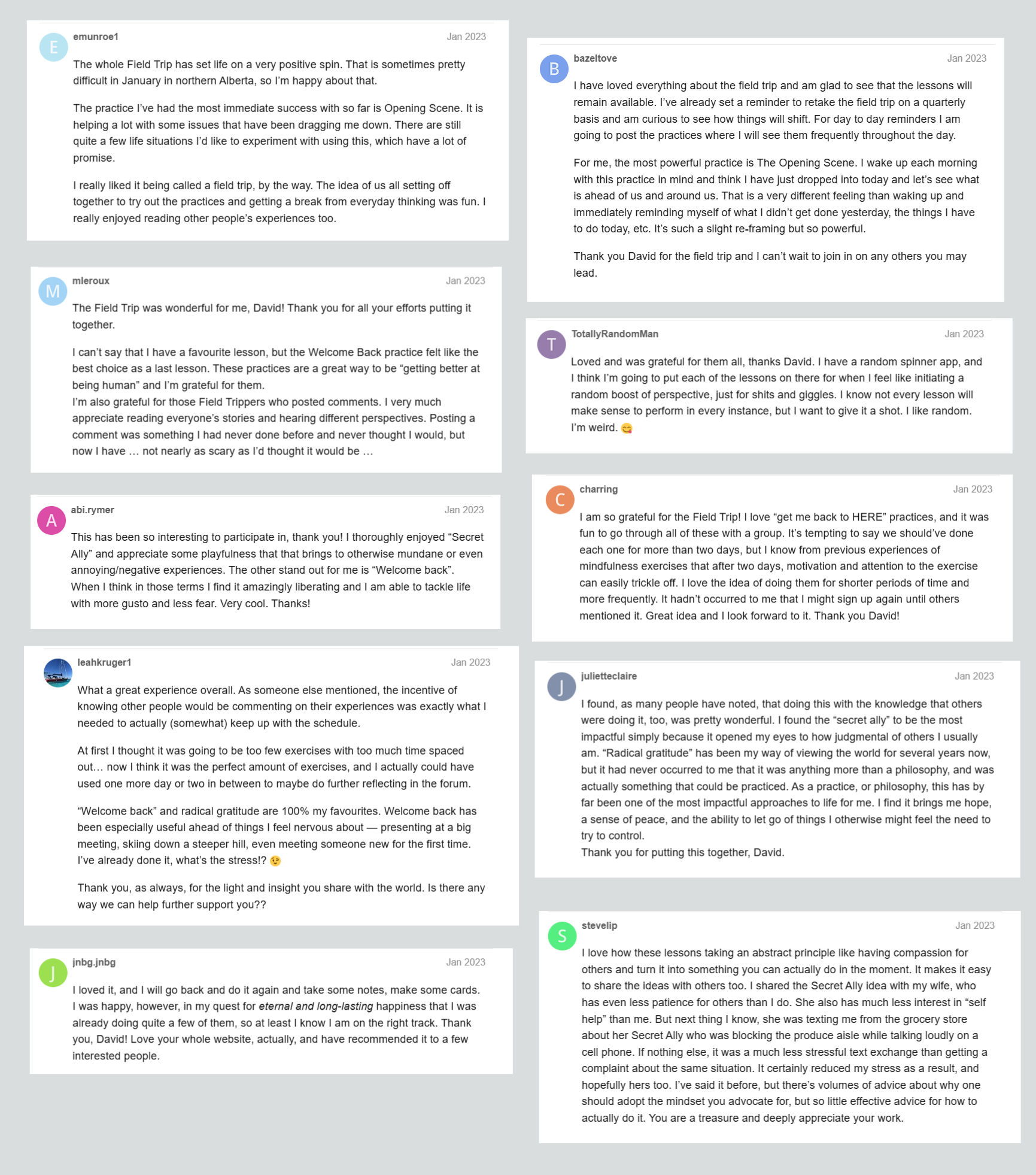 These Field Trips are fun and intended to bring some adventure and richness to day-to-day life, without taking much time. People really liked the first one.